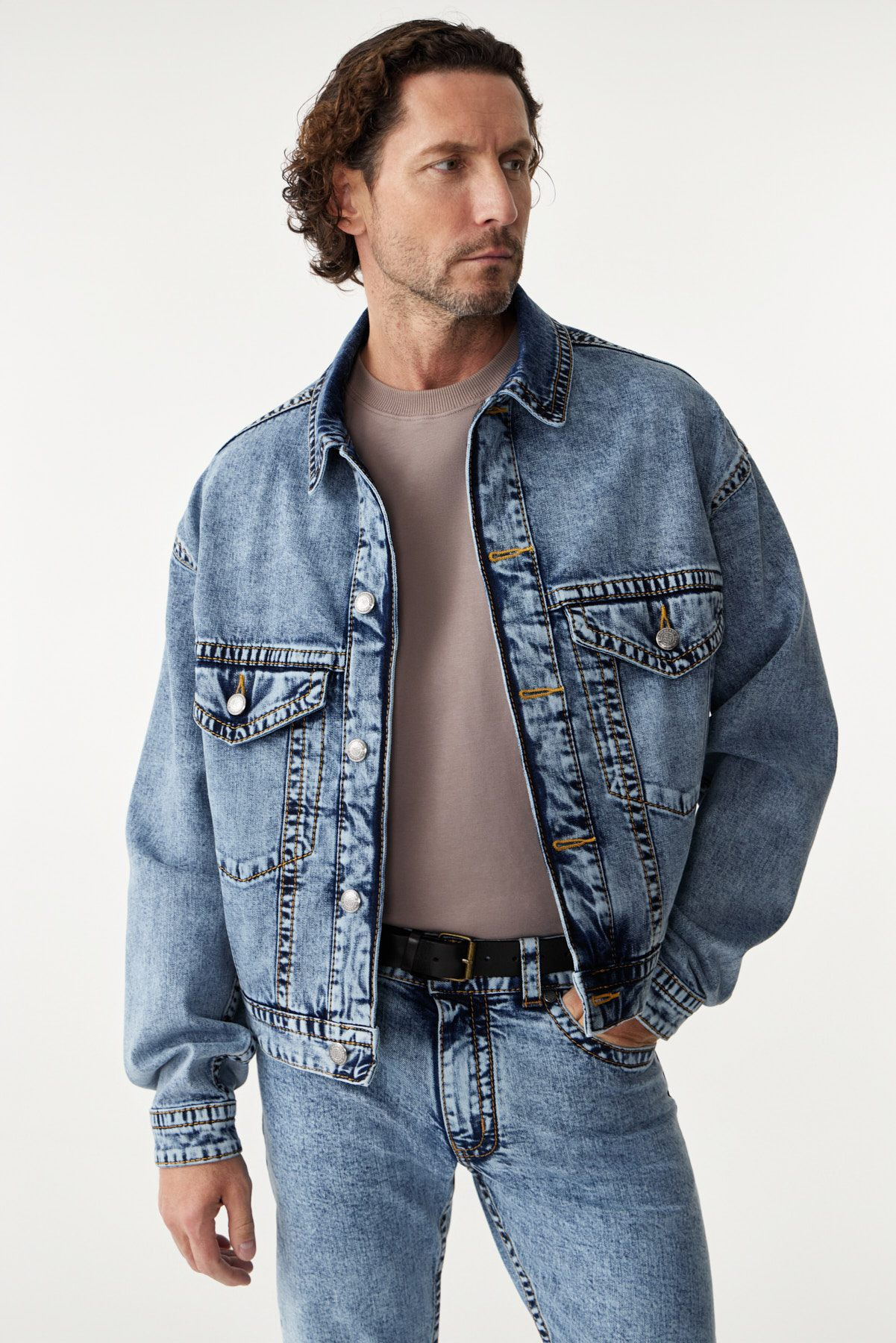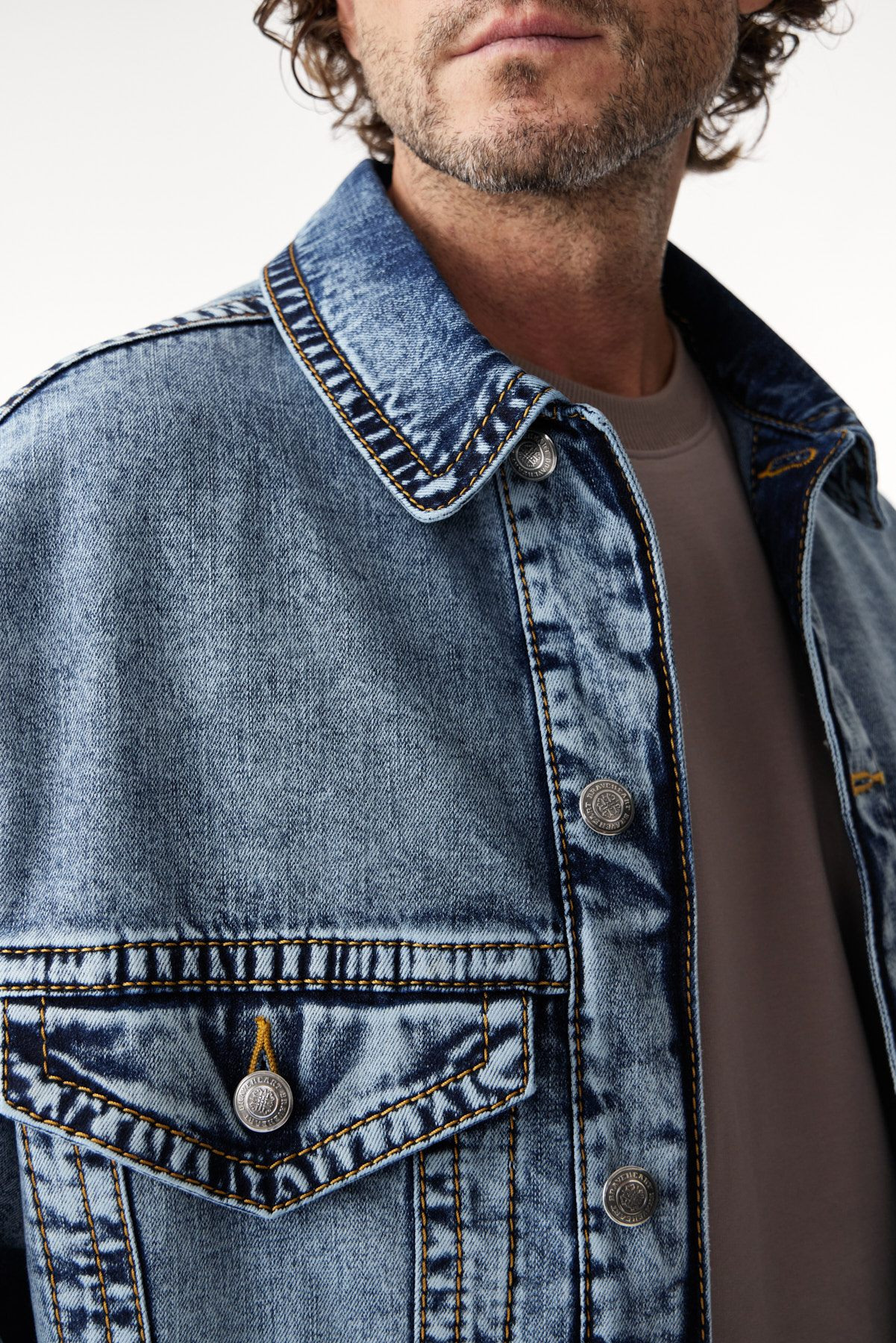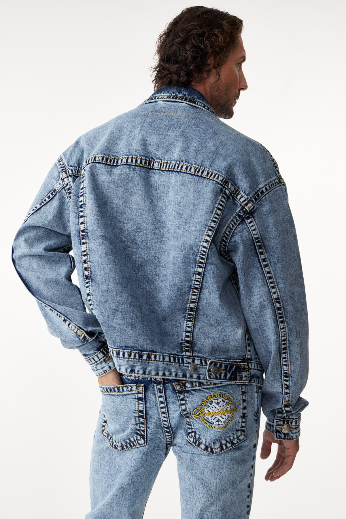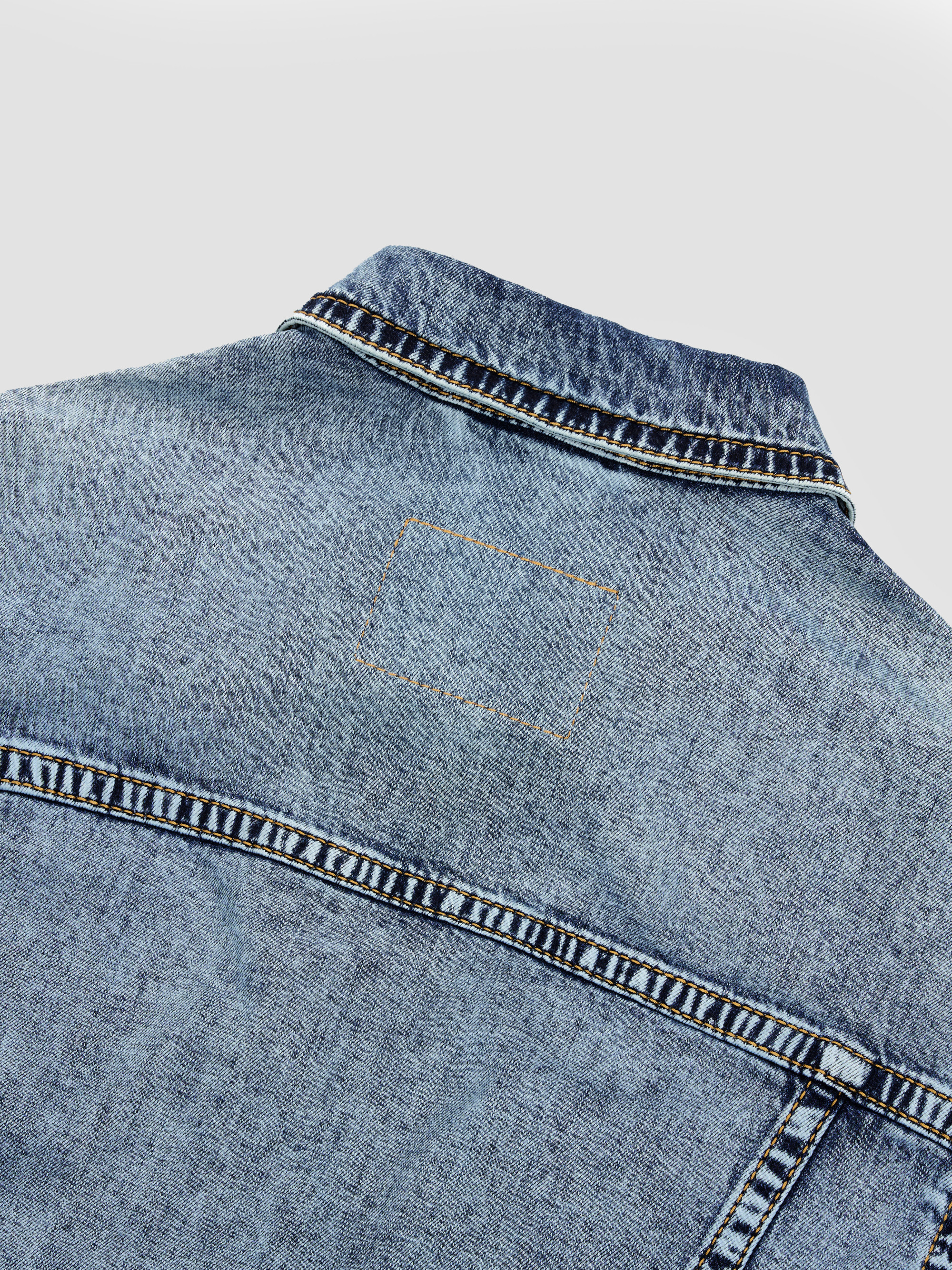 Создана для ценителей бунтарского стиля. Эта куртка имеет укороченный Oversized крой и слегка заужена к низу, что подчеркивает фигуру и делает образ динамичным. Большие нагрудные карманы, выступающие стильным дизайнерским элементом, являются полноценными и функциональными. Глубокий оттенок денима универсален и легко комбинируется с разными элементами гардероба.