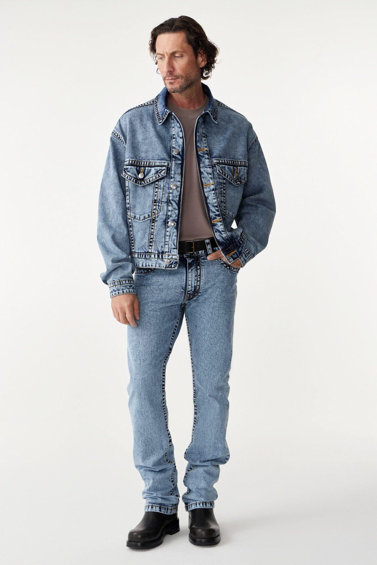 Материал – премиальный плотный деним (13 Oz) который на 99% состоит из хлопка и на 1% дополнен эластаном. Прошита фирменной широкой строчкой размером 12.8 мм. Внутренний карман вместит все необходимое: от телефона до портмоне.