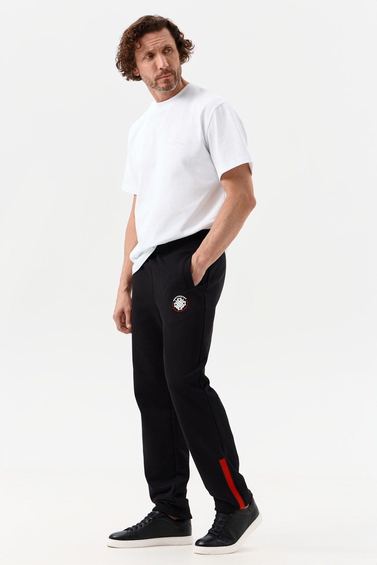 Спортивные брюки, в которых каждая деталь — про движение. Брюки выполнены из плотного трехниточного футера, который сохраняет форму, удерживает тепло и легко переносит нагрузки от занятий спортом. Посадка Regular с легким сужением к низу удобна как для спорта, так и для активного повседневного ритма.