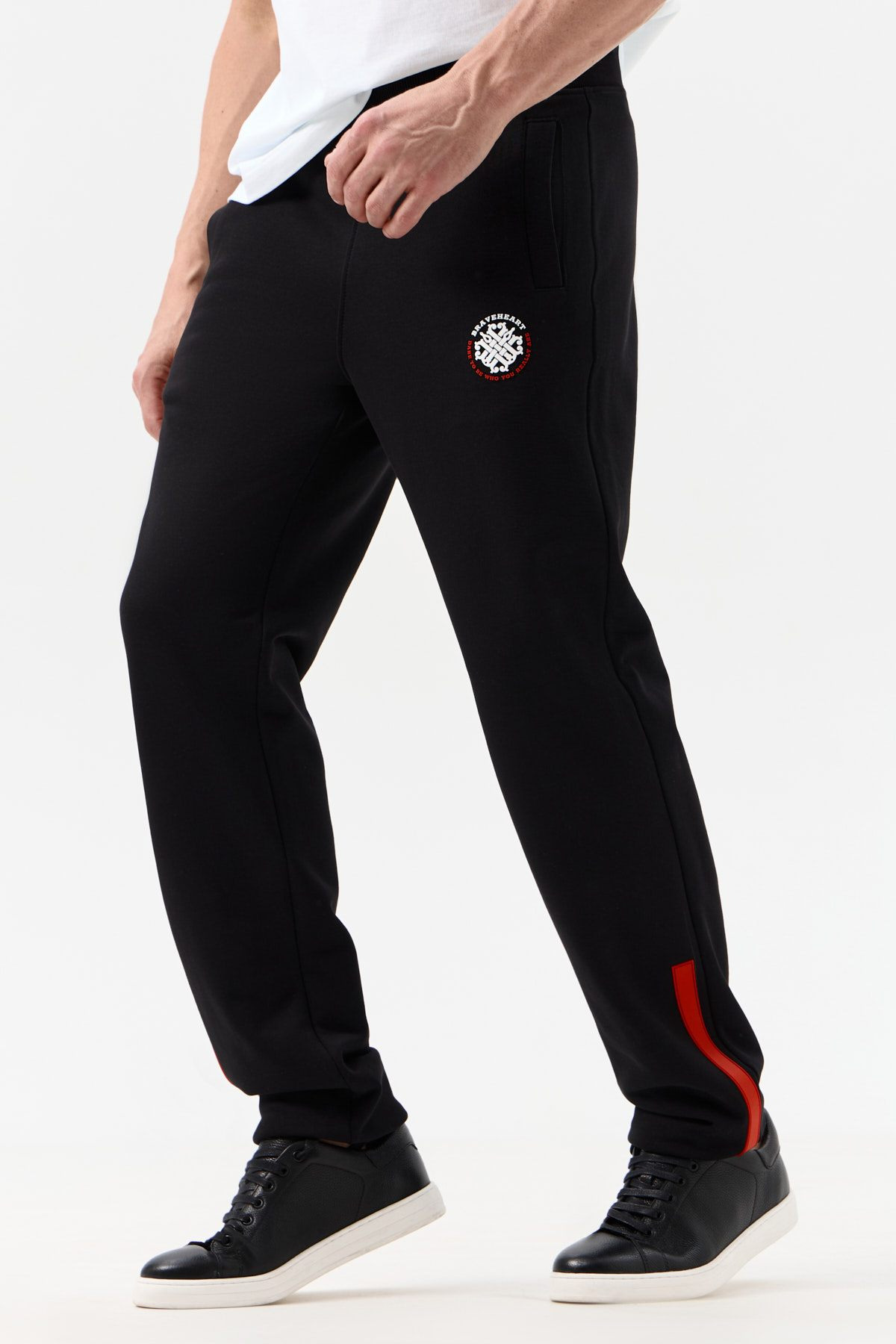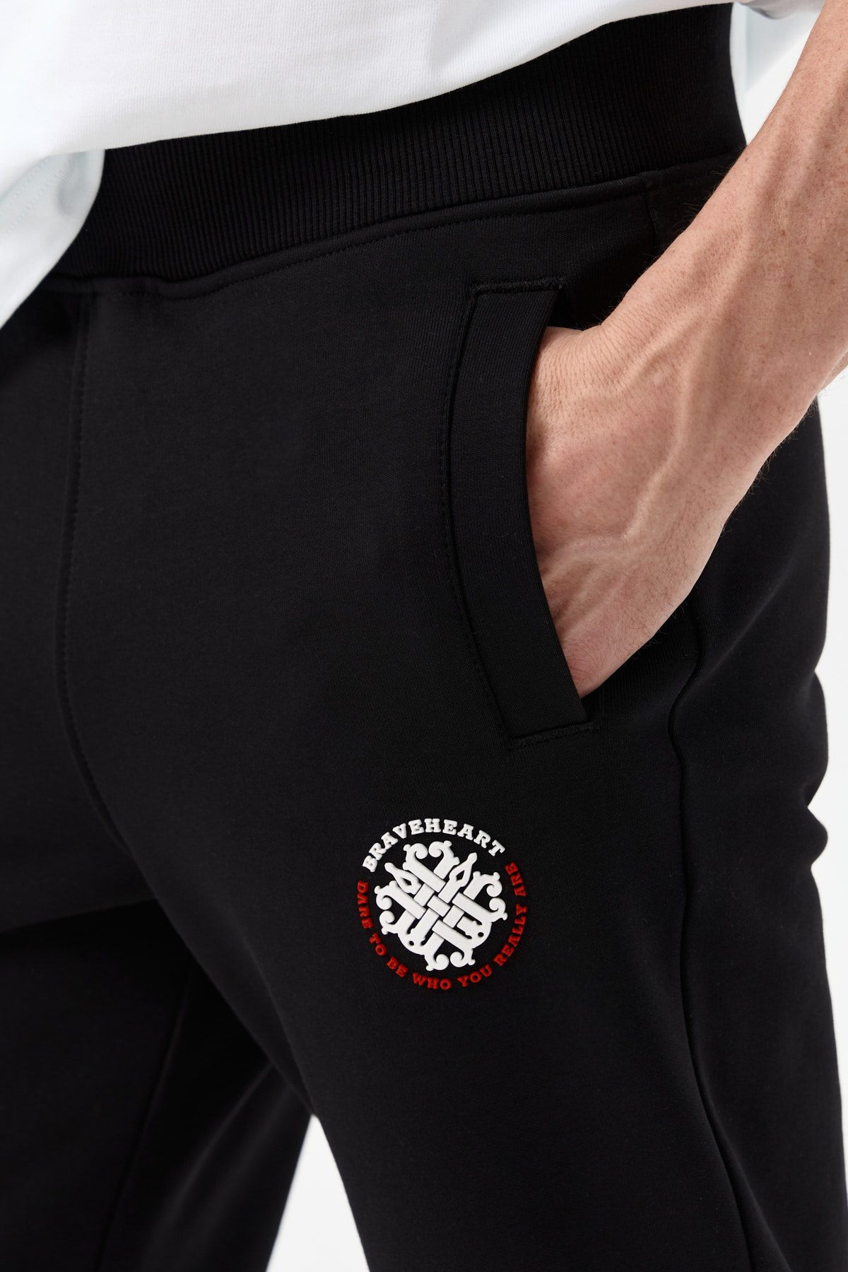 Сбоку — 3D-логотип BRAVEHEART, выполненный по технологии флекстран. Низ украшен силиконовыми лампасами — контрастными, но не кричащими. Удобный пояс на резинке и плотные манжеты надёжно фиксируют посадку. Брюки имеют три кармана: два боковых и один задний.