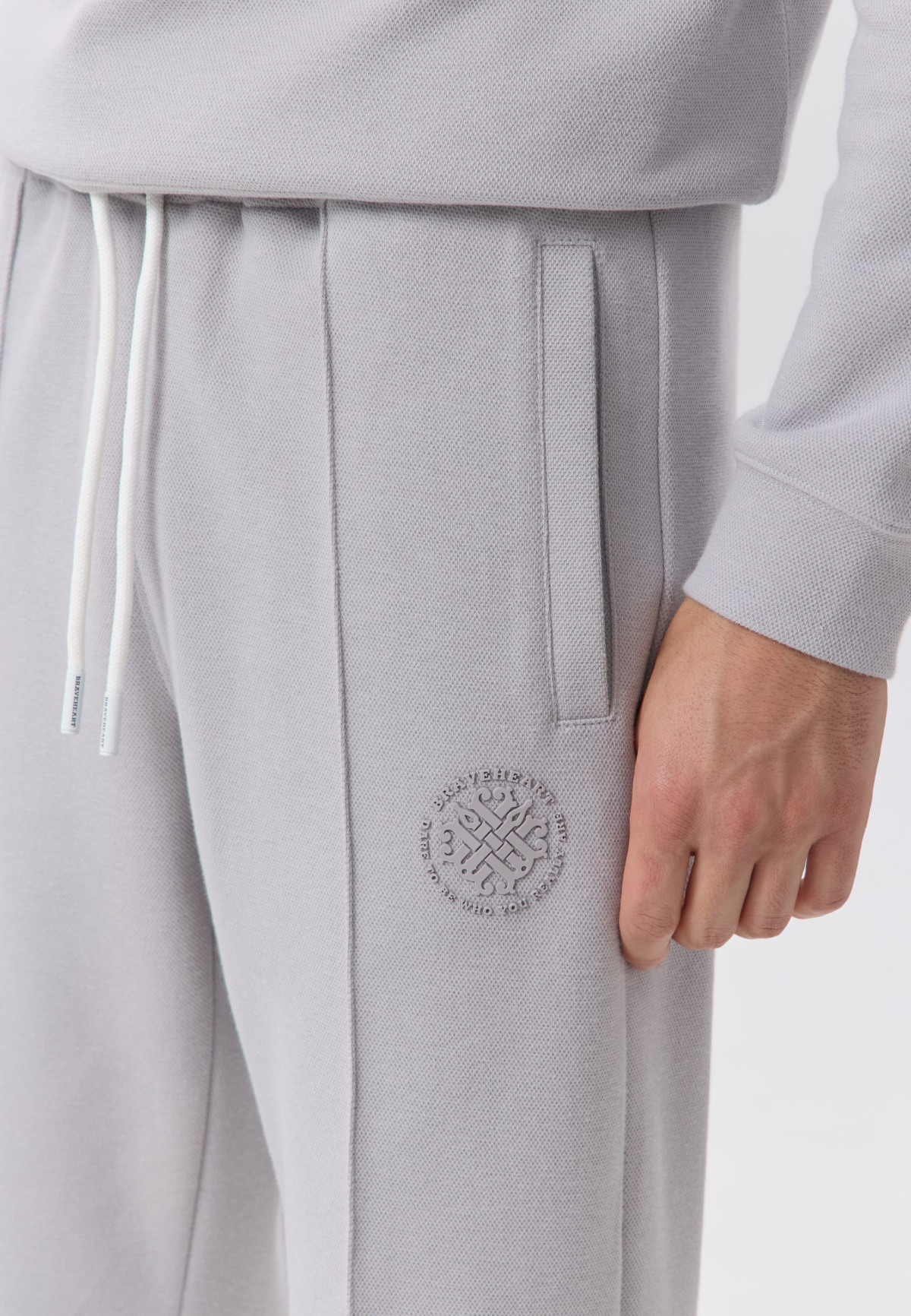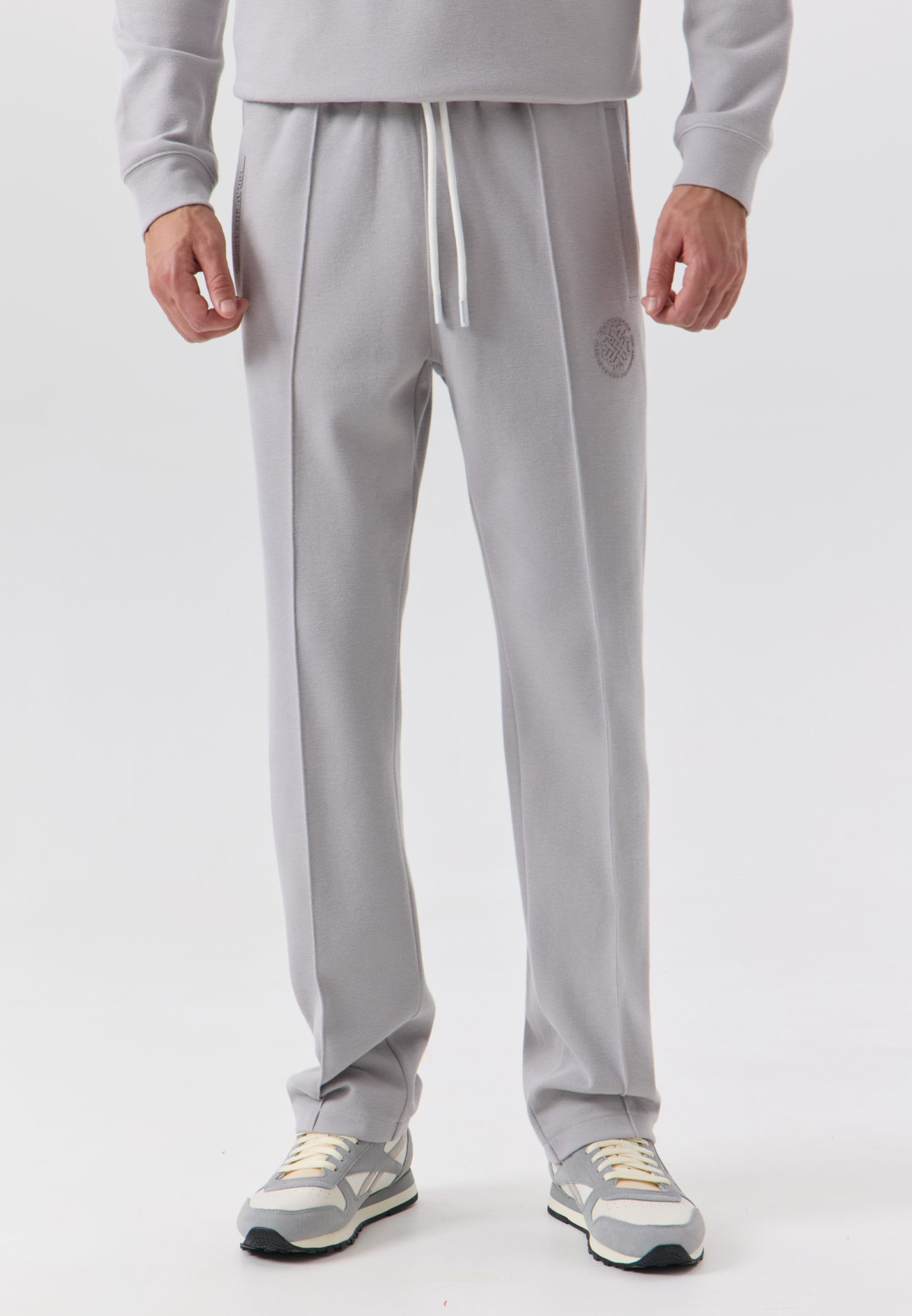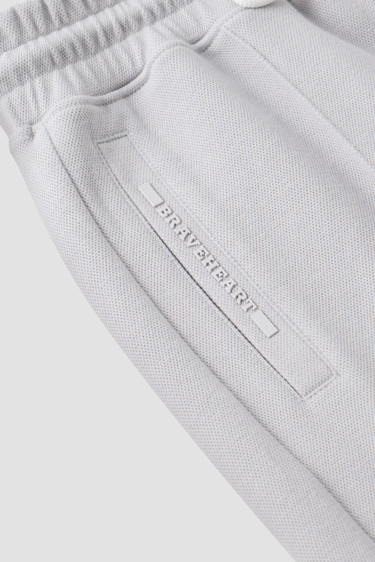На карманах нанесен логотип из флекстрана в цвет ткани, что подчеркивает внимание к деталям. Стрелки на брюках придают им более строгий и аккуратный вид, делая их подходящими как для спорта, так и для повседневной носки.