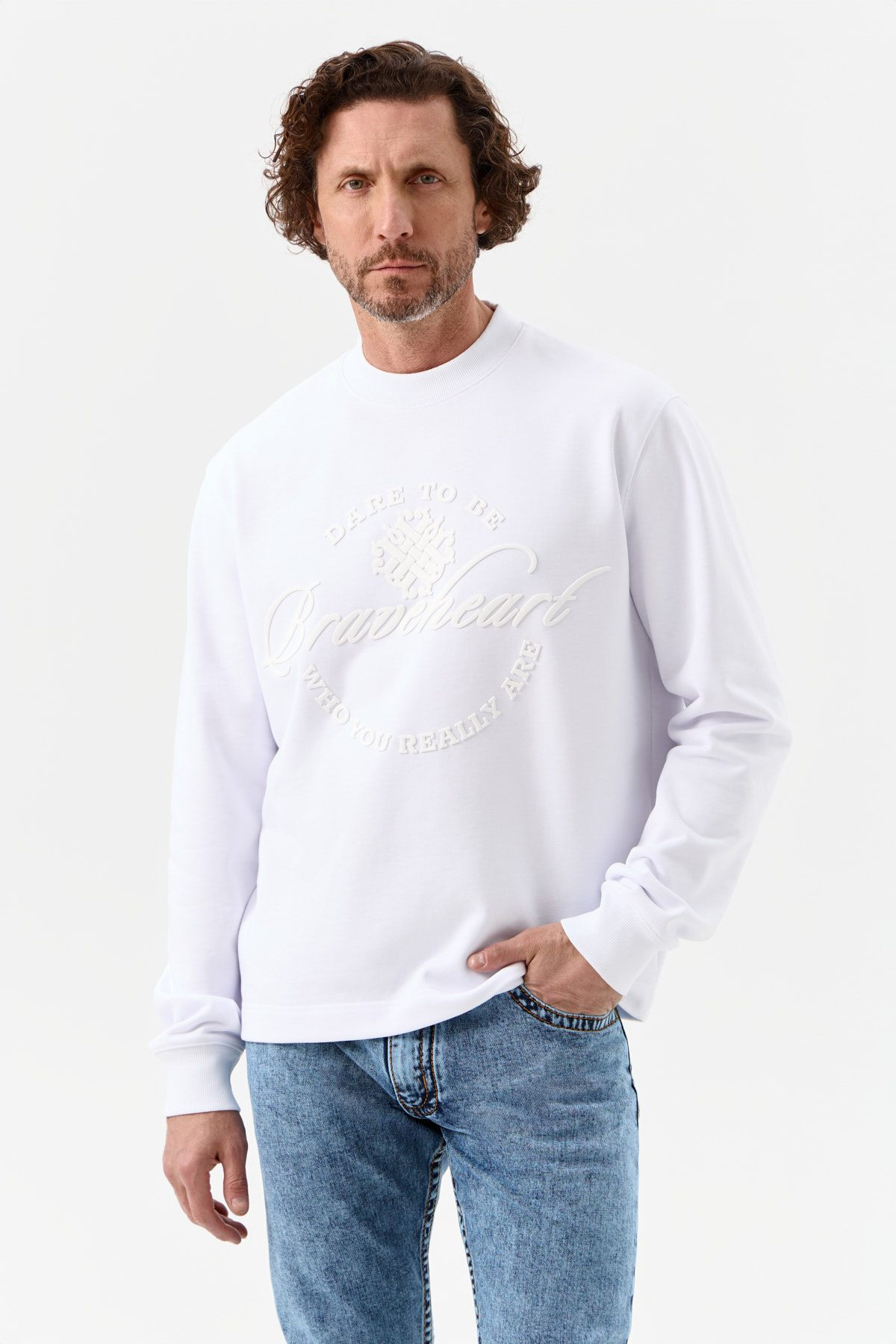 Крупный 3D-логотип BRAVEHEART и минималистичный патч на спинке выполнены из силикона по технологии флекстран. Резинки из рибаны по низу и на манжетах мягкие, но надёжные — удерживают форму и сохраняют посадку.