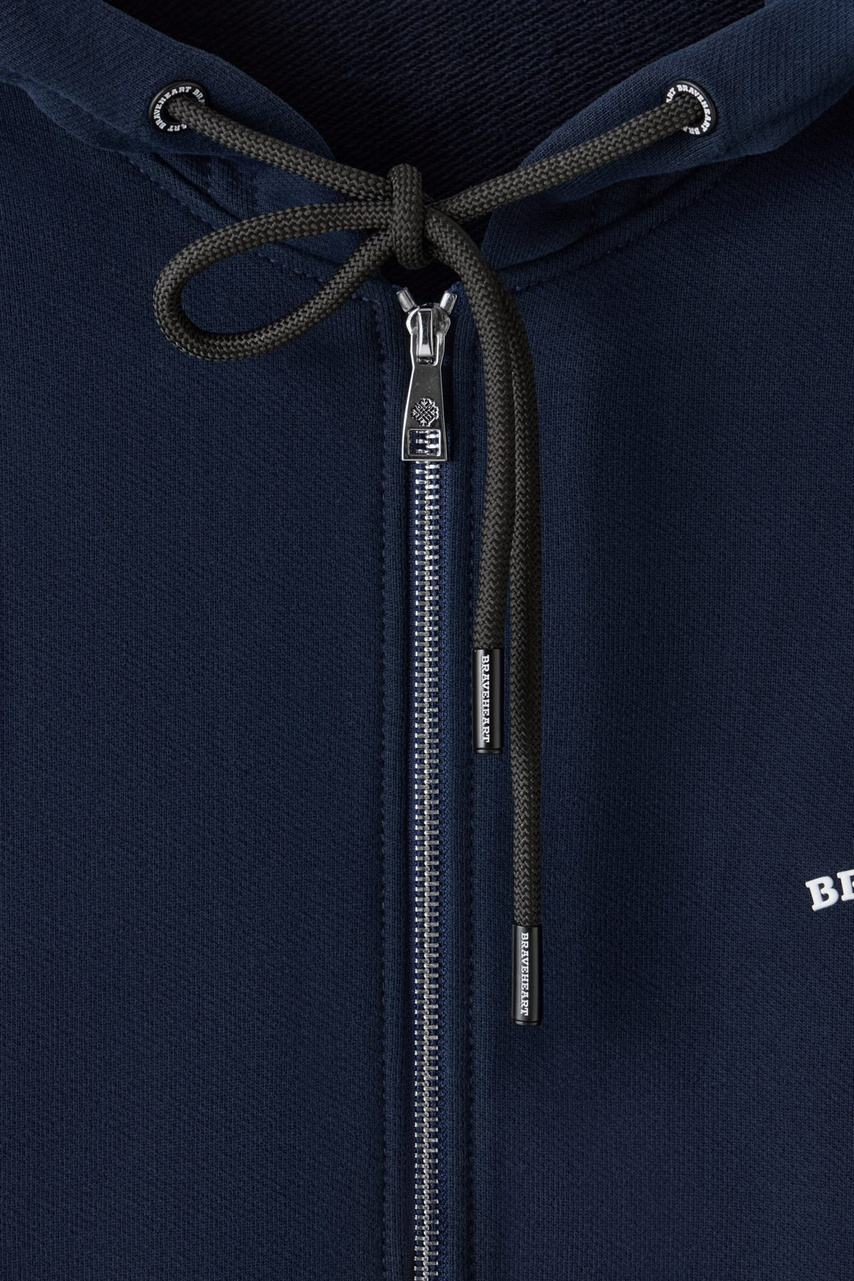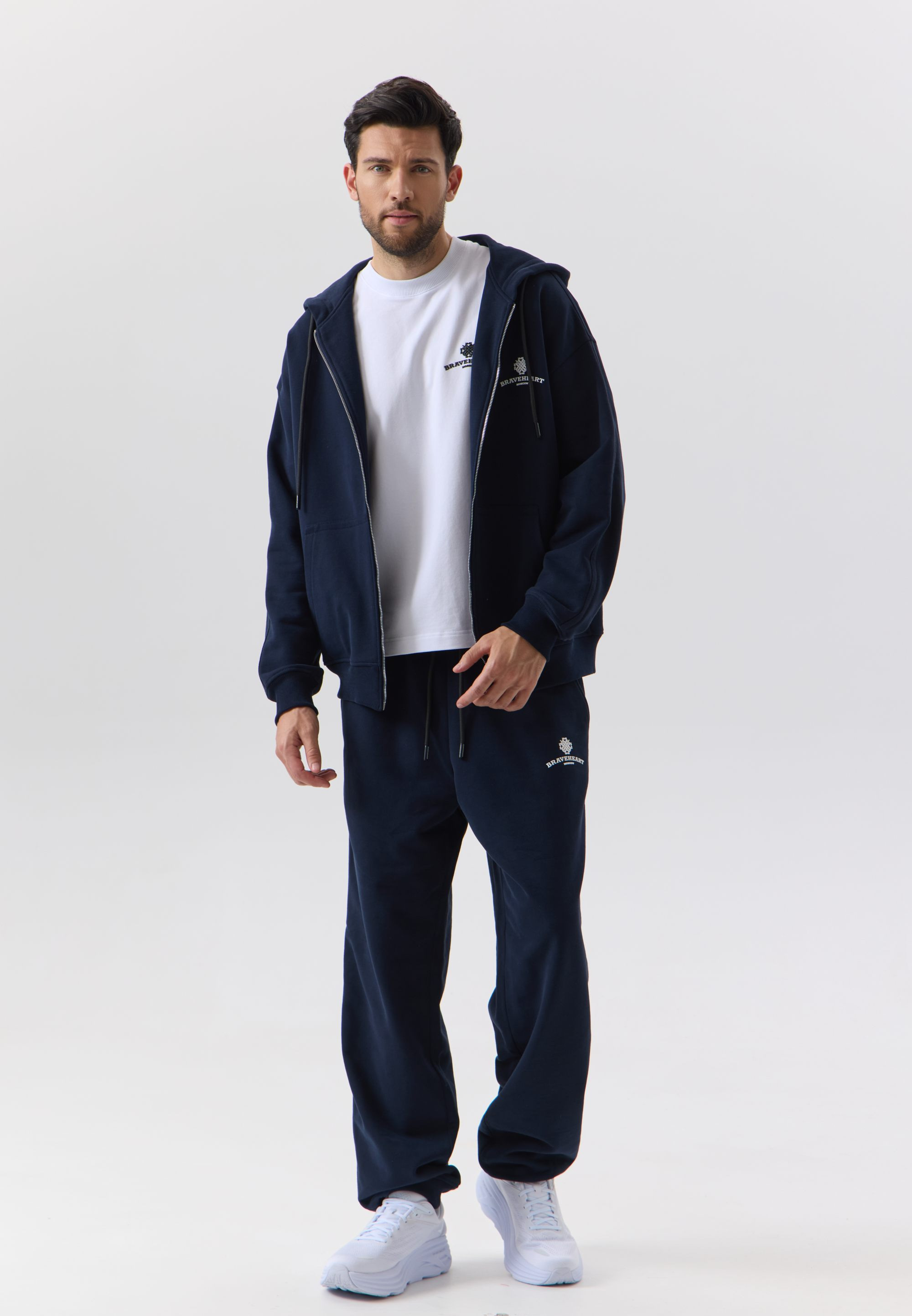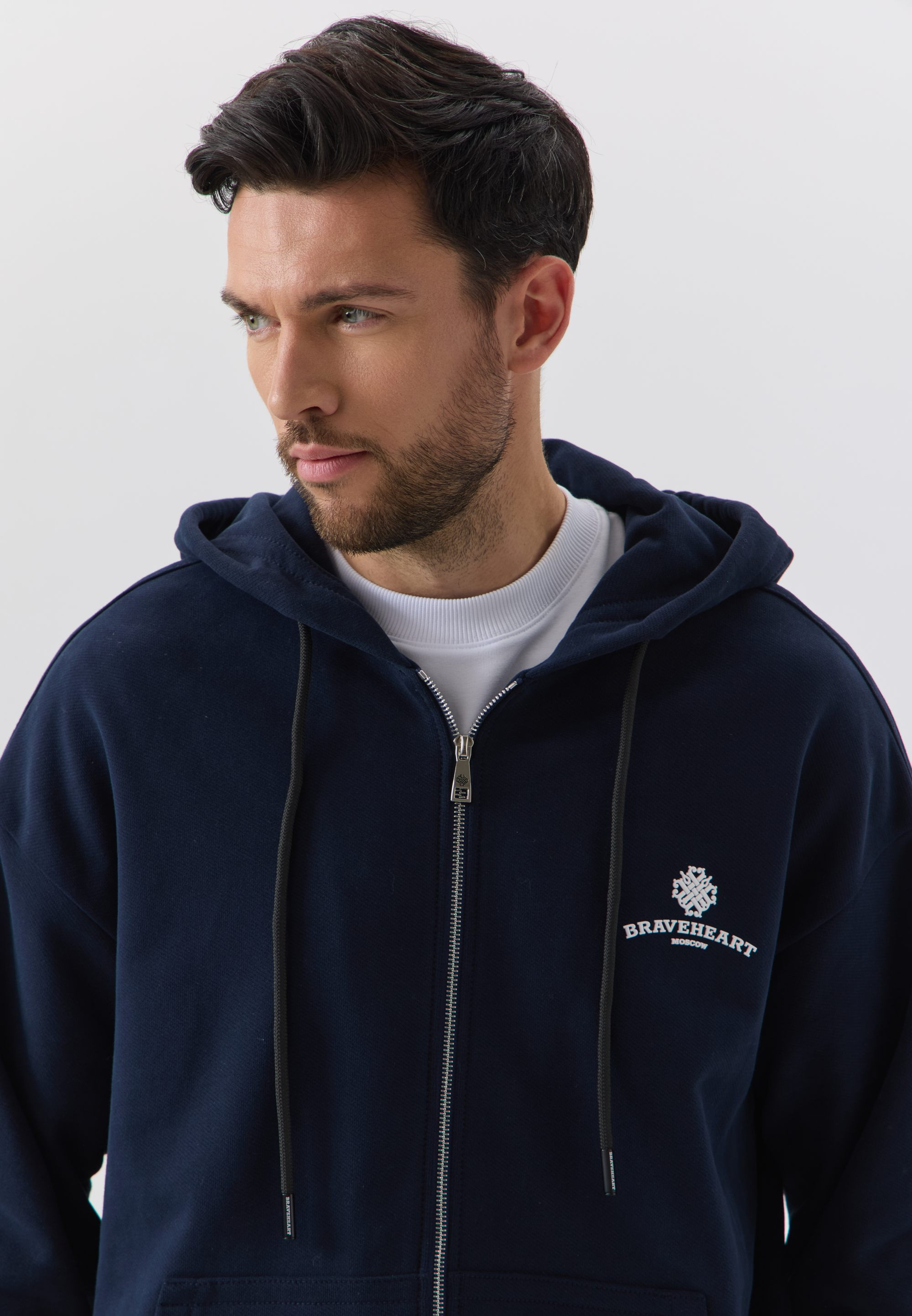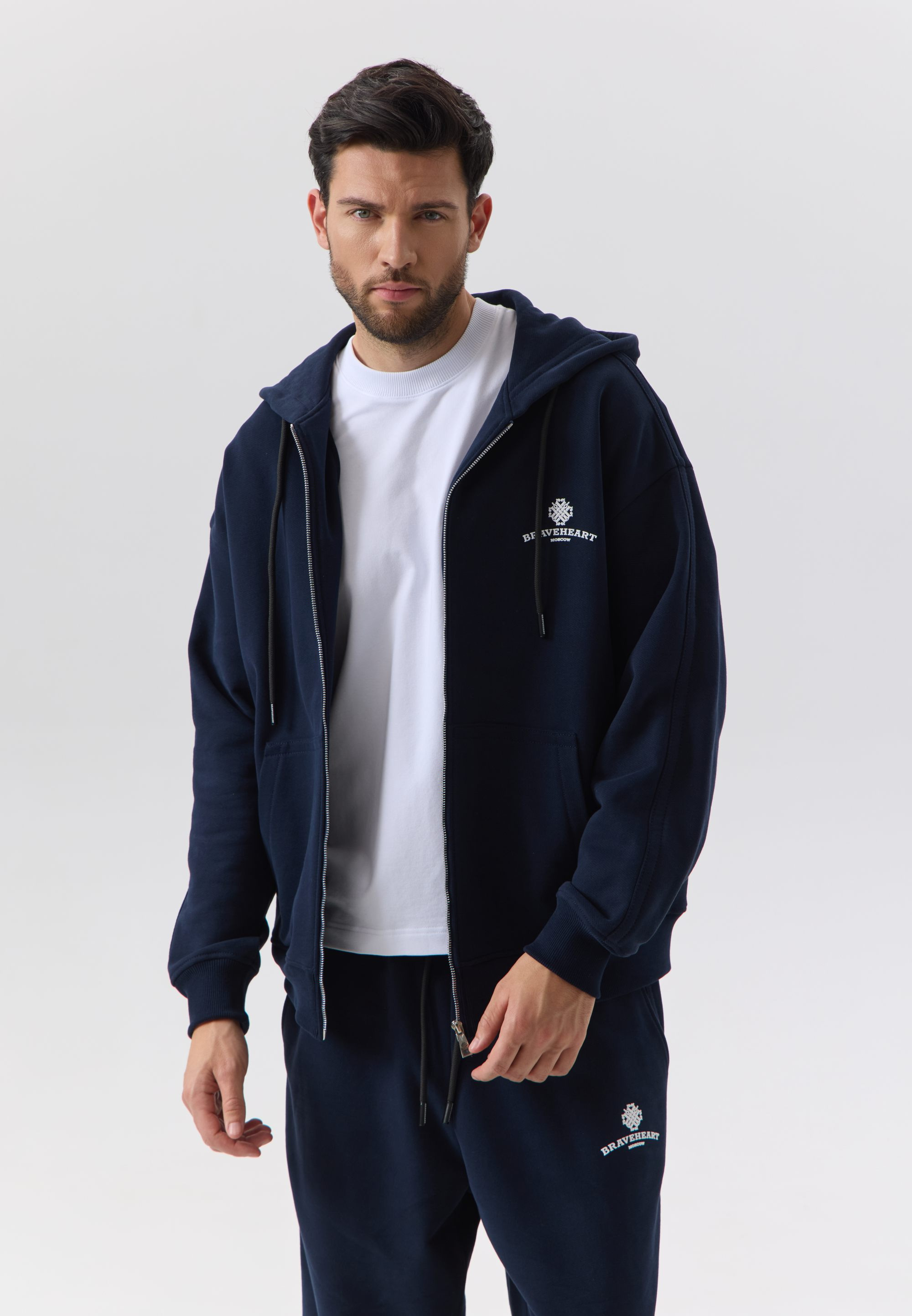 Толстовка оснащена брендированной молнией спереди, что делает её практичной и стильной, а в зоне капюшона предусмотрены брендированные люверсы и шнурки. Карманы и рукава прошиты фирменной широкой строчкой, что обеспечивает прочность и долговечность.
