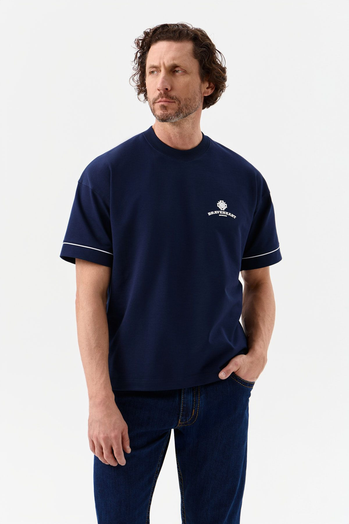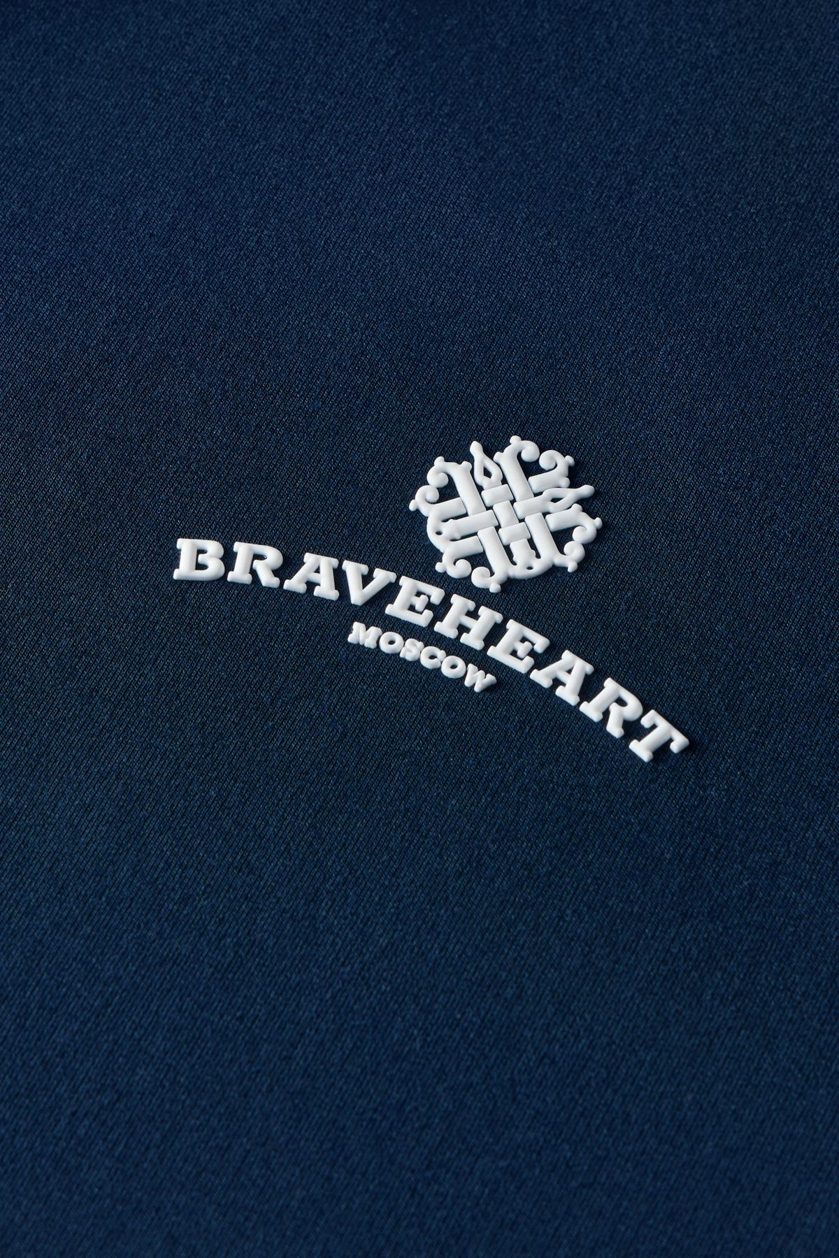 На груди — лаконичный 3D-логотип BRAVEHEART, выполненный из силикона по технологии флекстран. Акцентные канты на рукавах подчёркивают силуэт и делают образ еще чуть выразительнее.