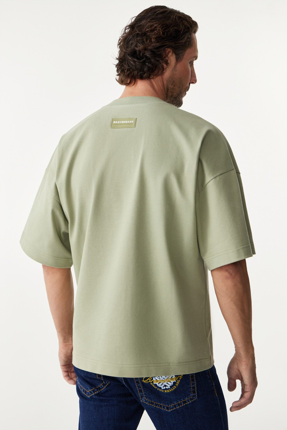 Легкая и стильная футболка в Oversized-крое. Прямой силуэт и пропорционально широкие рукава добавляют расслабленности в образ и делают ее универсальным выбором для каждого дня.